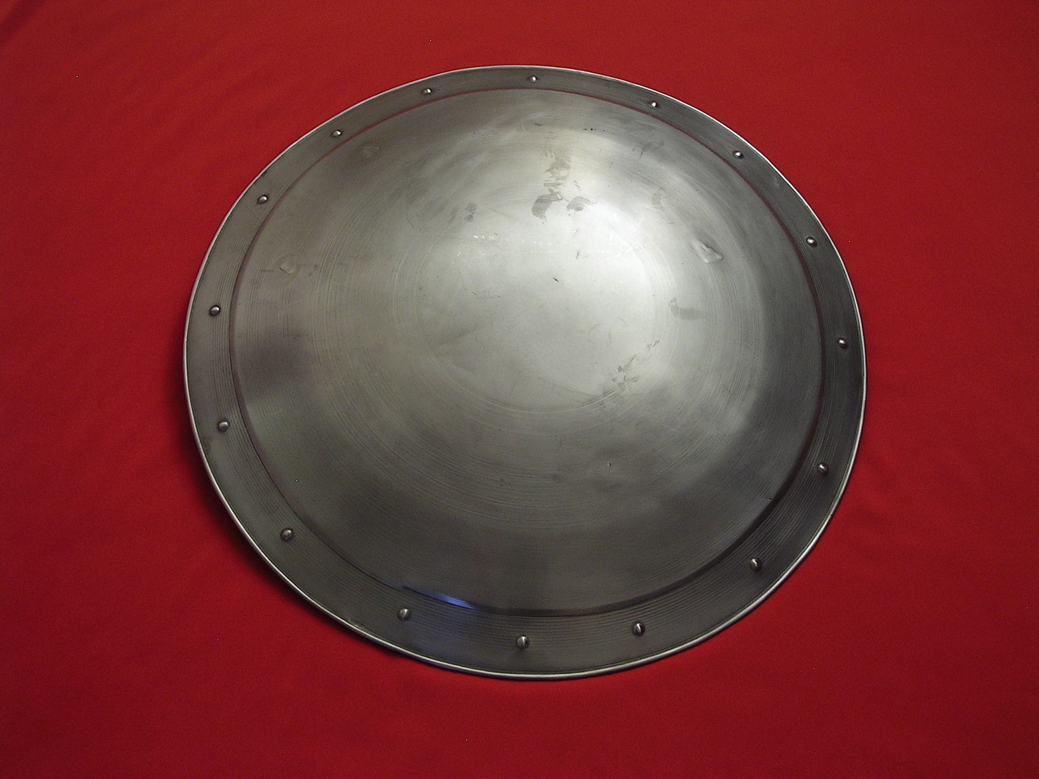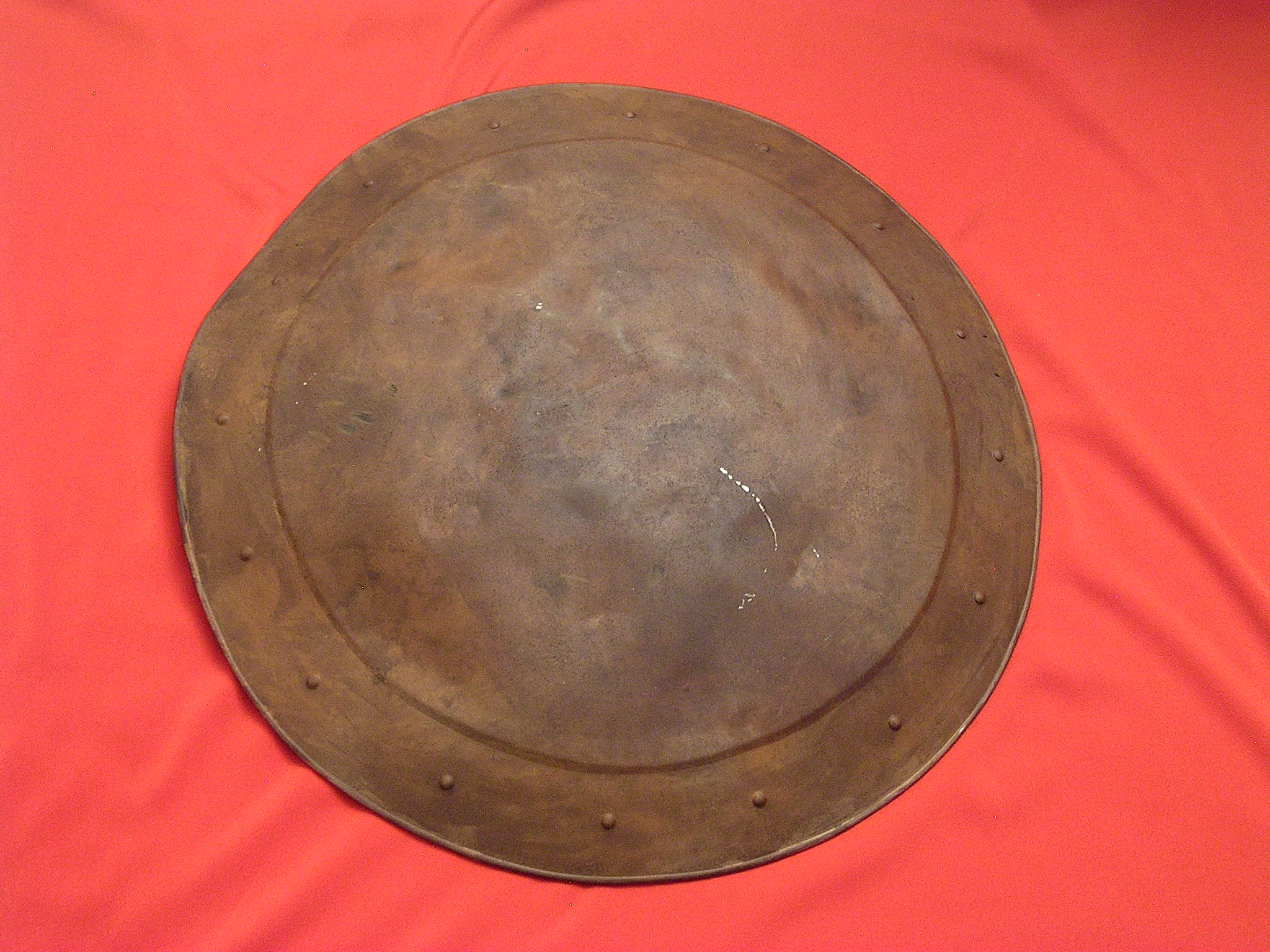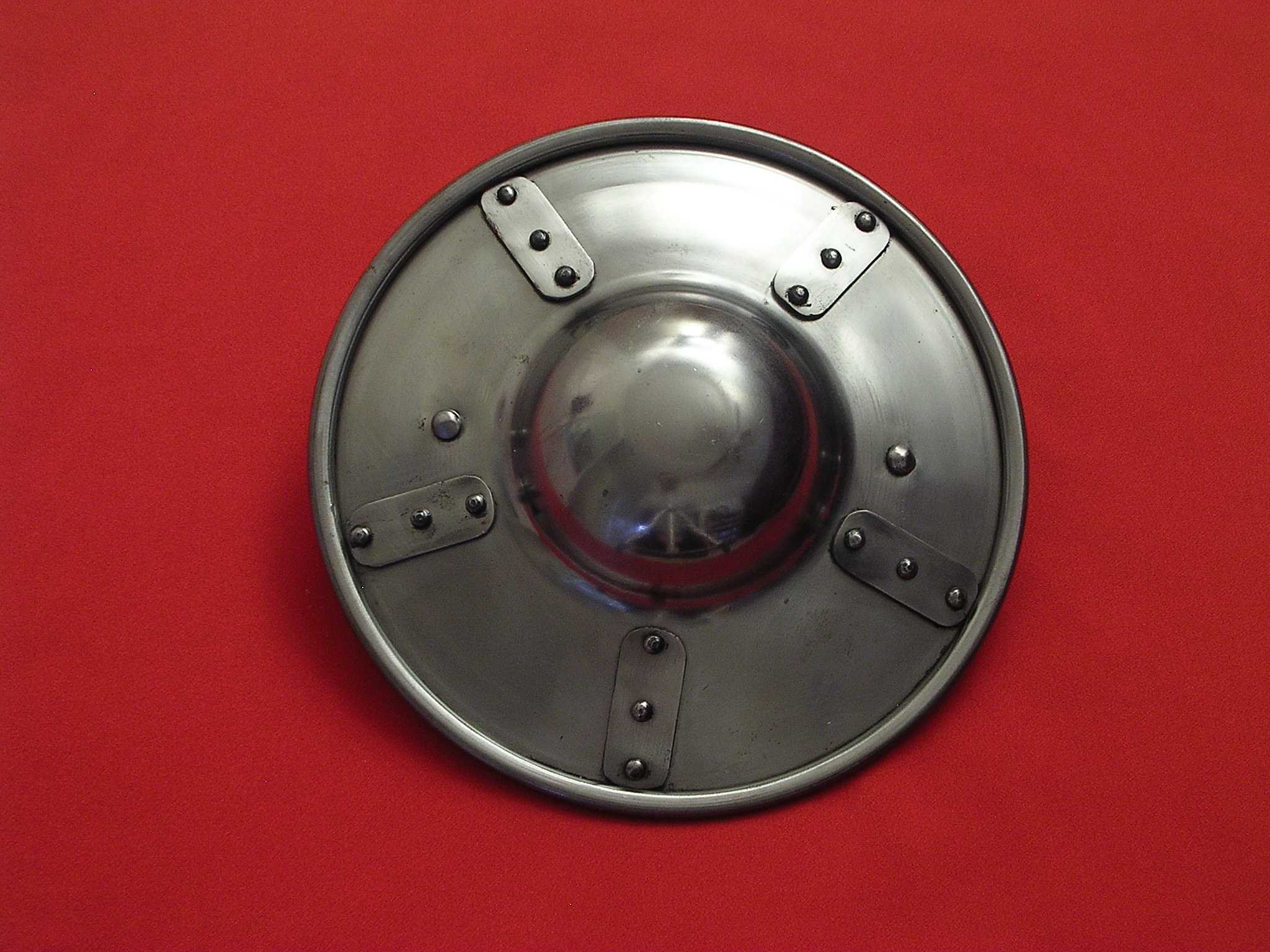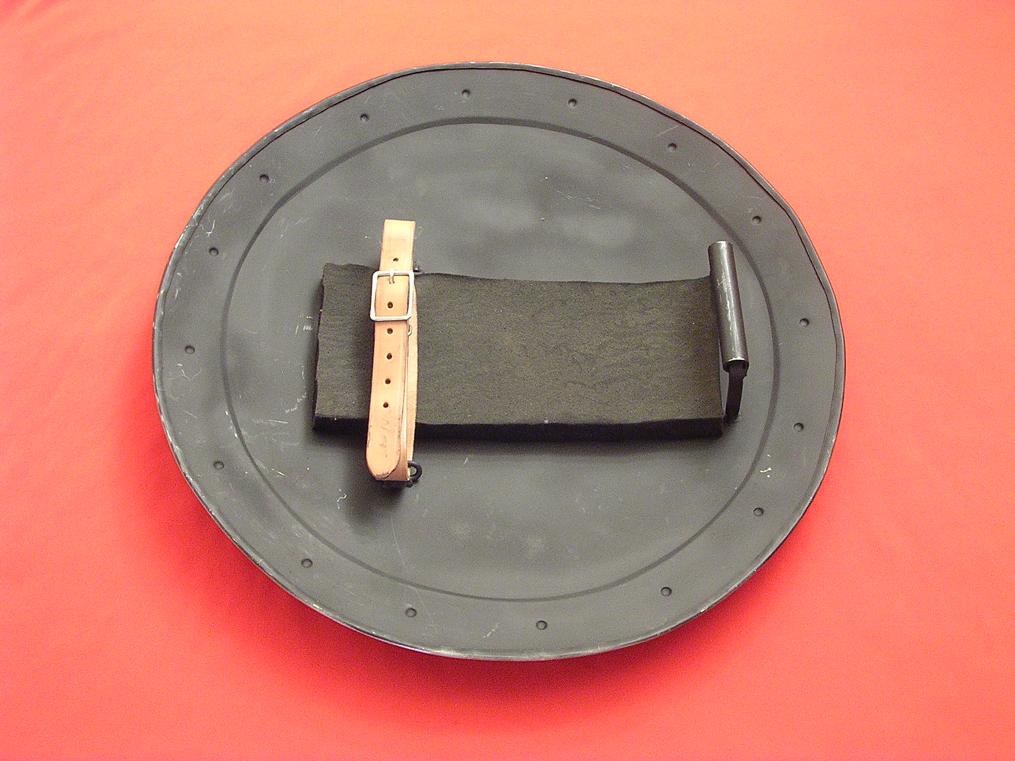 All of our shields are made of steel and are quite up to the task of staged combat. Be aware, however, that they are not indestructible and will not withstand full blows by heavy weapons such as maces, hammers or axes. These weapons were, after all, made to destroy armor and shields as well as the warriors they protected. A qualified Fight Director will be indispensable in training your actors in their use. Please contact us with any questions or concerns.