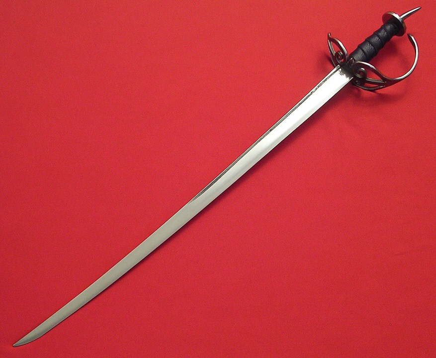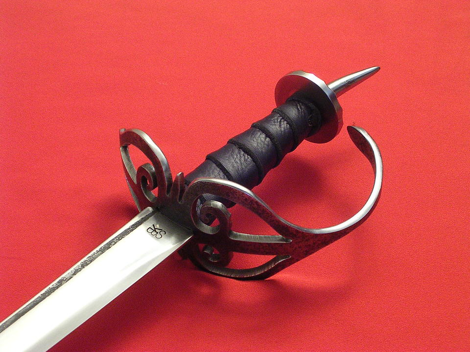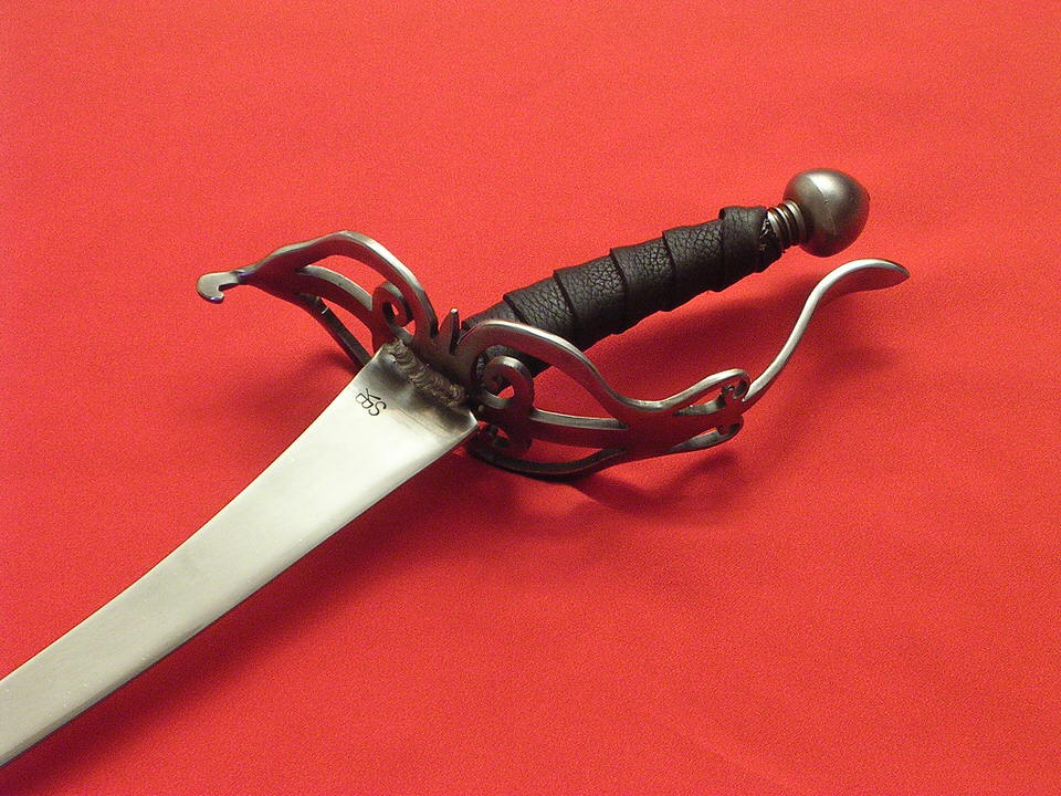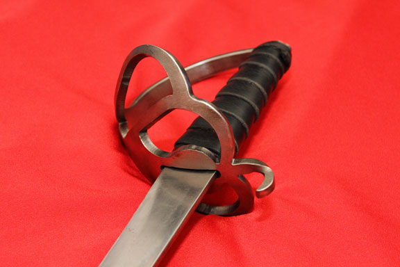 ![]() | Rough Guard Cutlass | 24 inch blade; 2 pounds. This cutlass has had some of the “fire scale” from heat treating left on the guard giving it a blackened, slightly rough appearance. (no scabbard available) | $10 |
